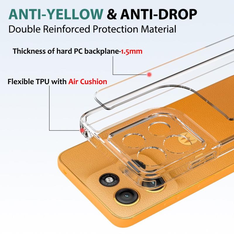 Cet accessoire utilise une combinaison d’acrylique et de TPU pour maintenir votre smartphone en parfait état. En même temps, les coins renforcés absorbent les chocs, tandis que la conception transparente met en valeur le superbe design de votre Motorola Moto G17 Power, Moto G17, Moto G15.