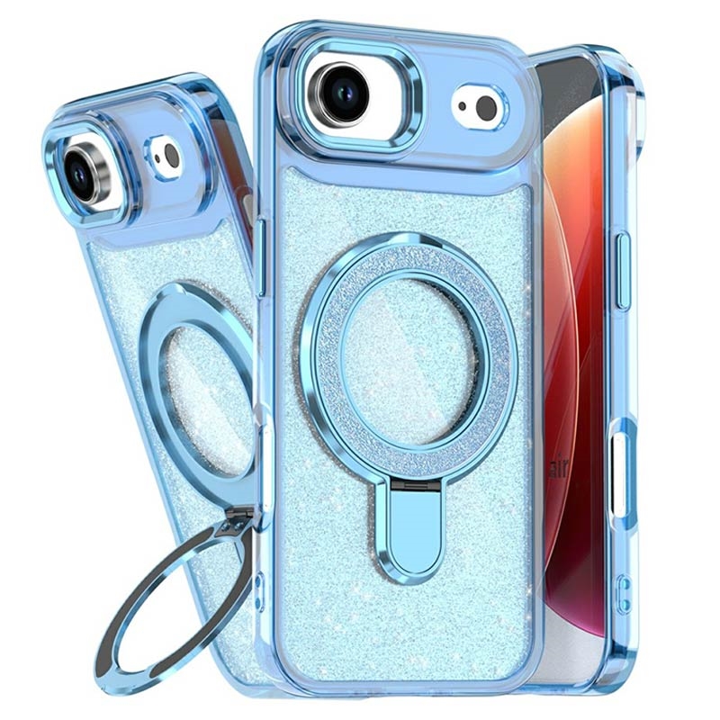 Coque hybride pailletée iPhone Air avec Kickstand - Compatible MagSafe - Bleue