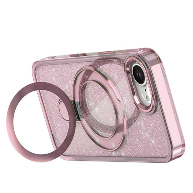 Coque hybride pailletée iPhone 16e avec Kickstand - Compatible MagSafe - Rose
