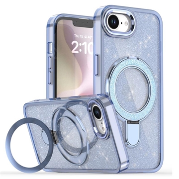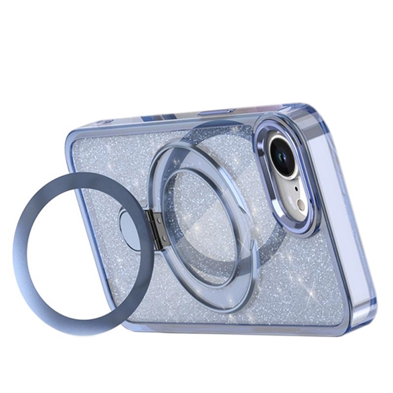 Coque hybride pailletée iPhone 16e avec Kickstand - Compatible MagSafe - Bleue