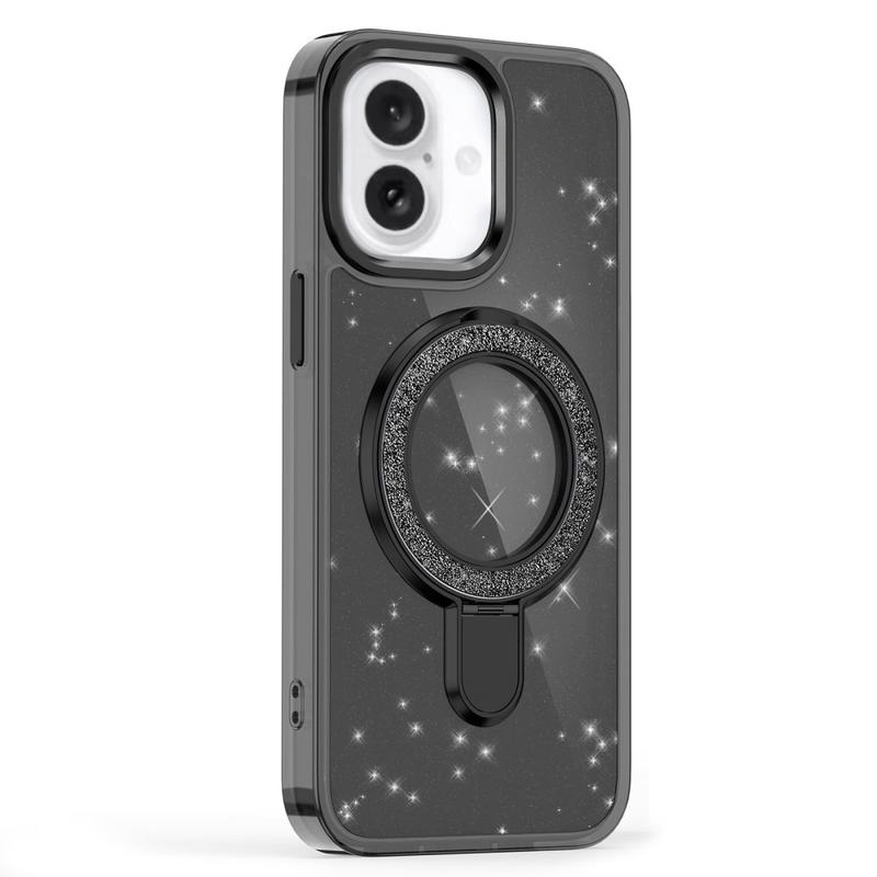 Coque pailletée avec Kickstand pour iPhone 16 - Coque Kickstand hybride TPU + PC compatible MagSafe
