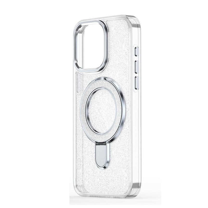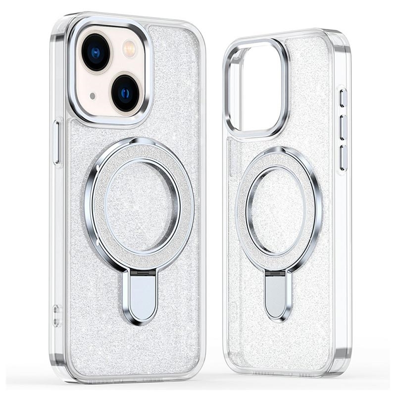Coque hybride pailletée iPhone 15 avec Kickstand - Compatible MagSafe - Transparente