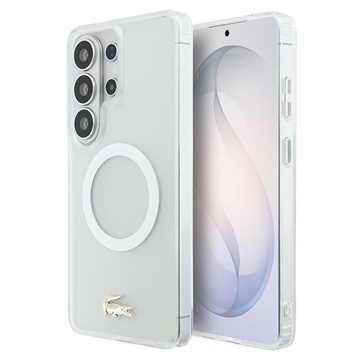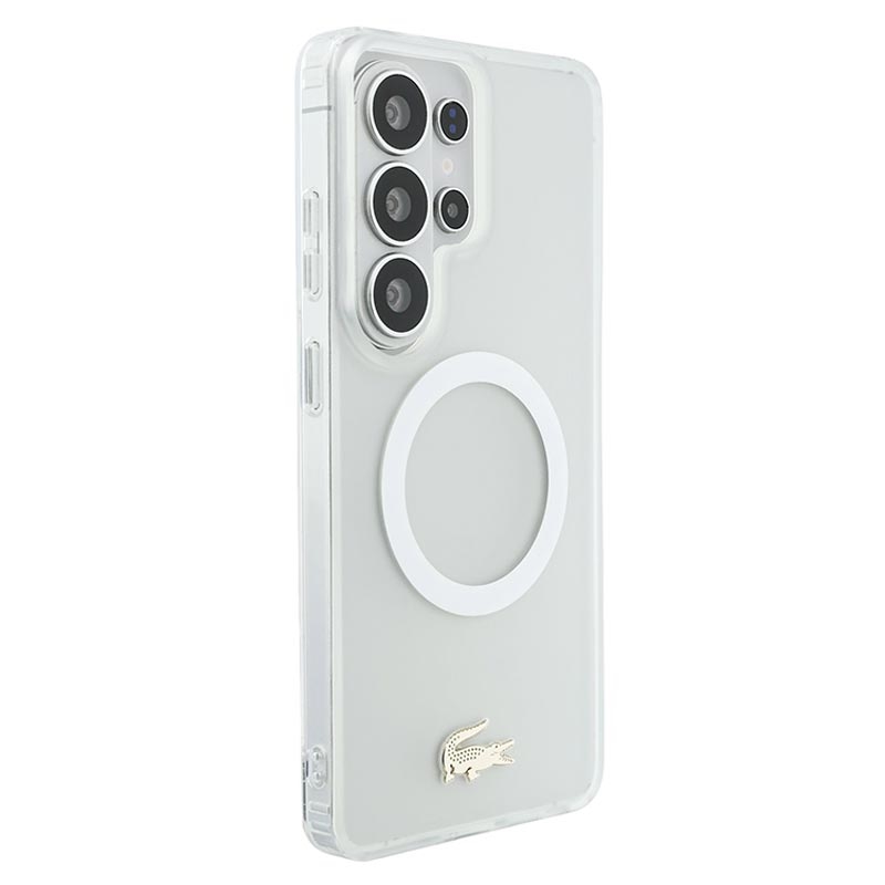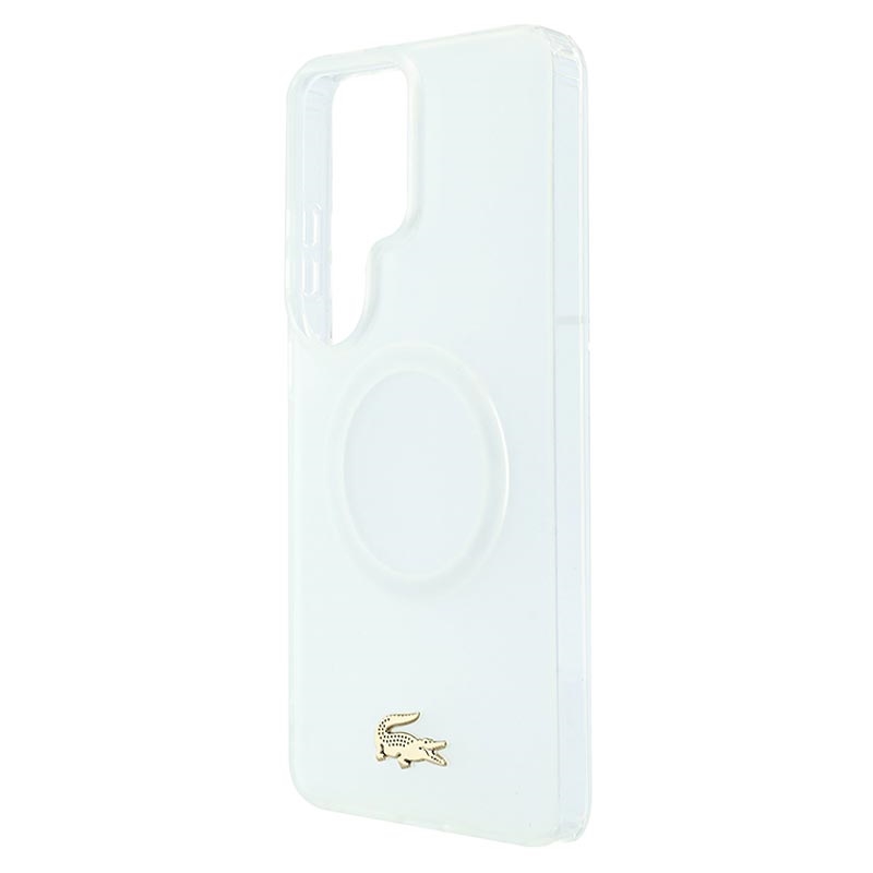 Coque Hybride Lacoste Frosted Finish Gold Logo pour Samsung Galaxy S26 Ultra - Compatible MagSafe, Coque arrière premium avec logo doré et cadre photo