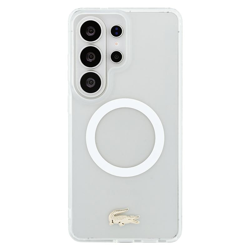 Protégez votre Samsung Galaxy S26 Ultra avec style grâce à la coque Lacoste Frosted Finish Gold Logo MagSafe Case. Fabriqué à partir d'un mélange durable de polycarbonate (PC) et de TPU flexible, cet étui assure une protection quotidienne fiable tout en conservant un profil fin et élégant. La finition mate givrée met en valeur le logo emblématique en forme de crocodile doré et l'élégant cadre doré de l'appareil photo, ajoutant ainsi une touche luxueuse à votre appareil. Grâce à la compatibilité MagSafe, il prend en charge la recharge sans fil et les accessoires sans compromis.