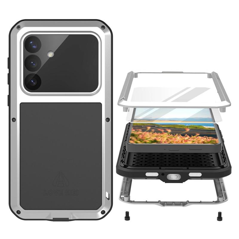 Coque hybride Love Mei Powerful pour Samsung Galaxy S26+ - Coque de protection antichoc en métal et silicone très résistante