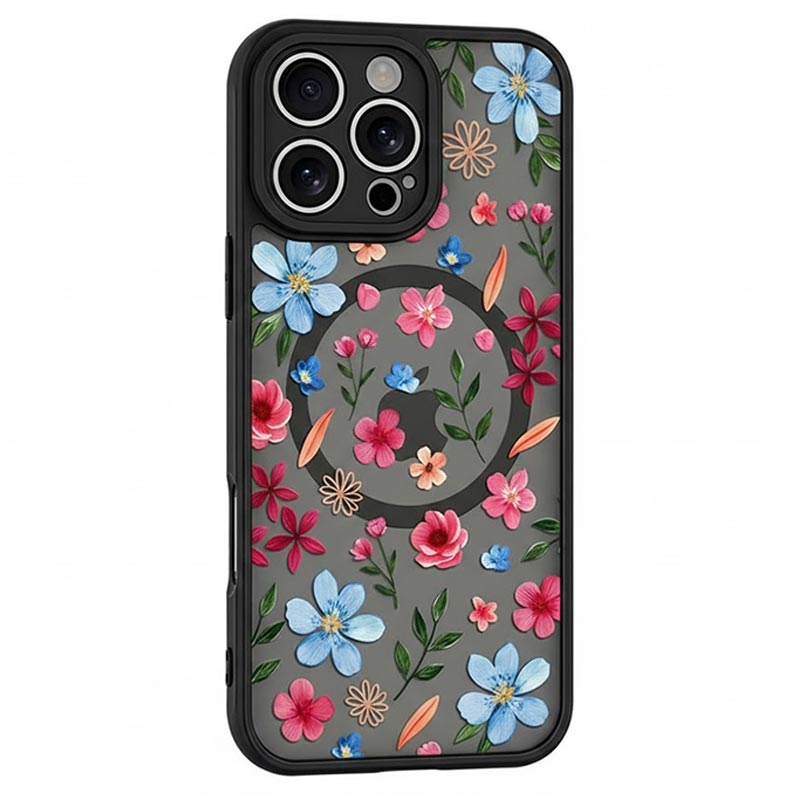 Coque iPhone 14 Pro magnétique protectrice - Fleurs colorées
