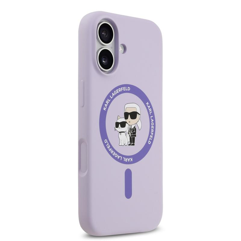 Coque iPhone 17 en silicone liquide MagSafe Karl Lagerfeld Karl and Choupette - Violete