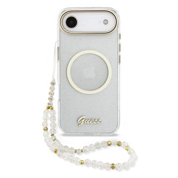 • Coque MagSafe avec dragonne Guess IML Glitter Script pour iPhone Air - Coque arrière pailletée avec dragonne, protection PC+TPU, compatible MagSafe