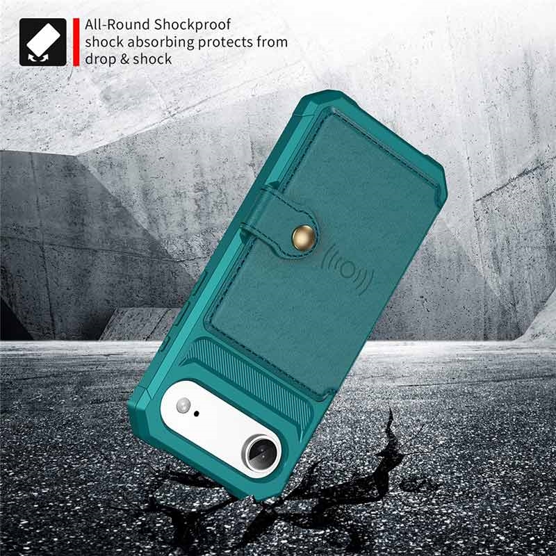 - L'étui portefeuille pour iPhone Air a une fermeture à bouton-pression sécurisée, un design de portefeuille et plusieurs fentes pour cartes avec une poche pour l'argent