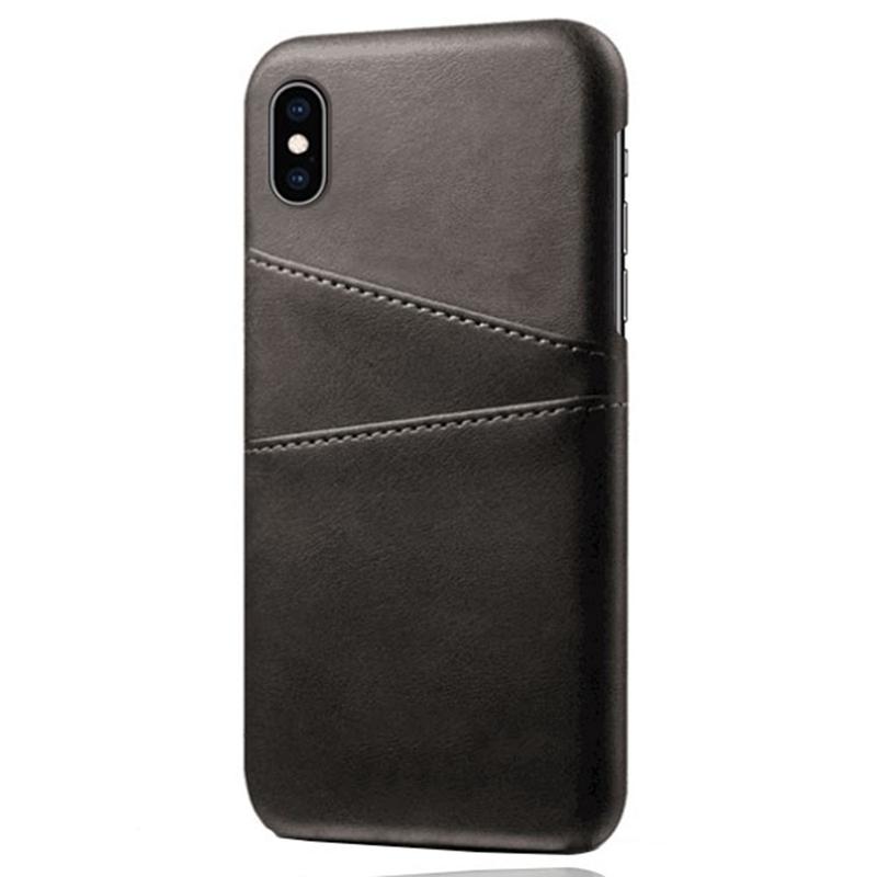 Coque iPhone X/XS en Plastique Revêtue avec Porte-Cartes KSQ - Noire