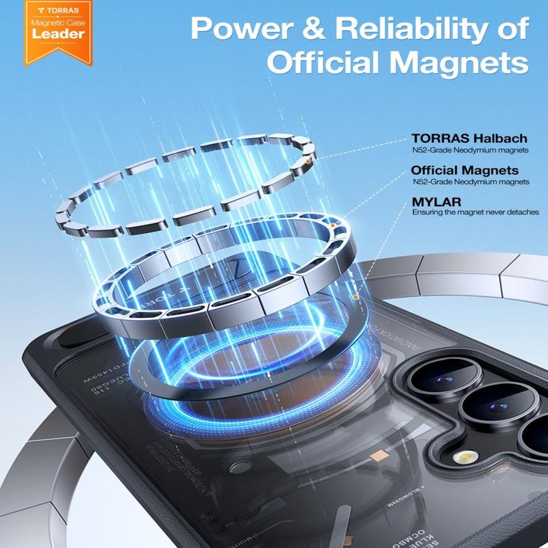 Équipé d'aimants N56 et de la technologie MegaMag-Boosted, l'étui offre une fixation magnétique jusqu'à 1,5 fois plus puissante que les étuis standard. Il se connecte en toute sécurité aux chargeurs magnétiques, aux supports de voiture et à d'autres accessoires, garantissant un alignement stable et un chargement sans fil fiable sans avoir à retirer l'étui.