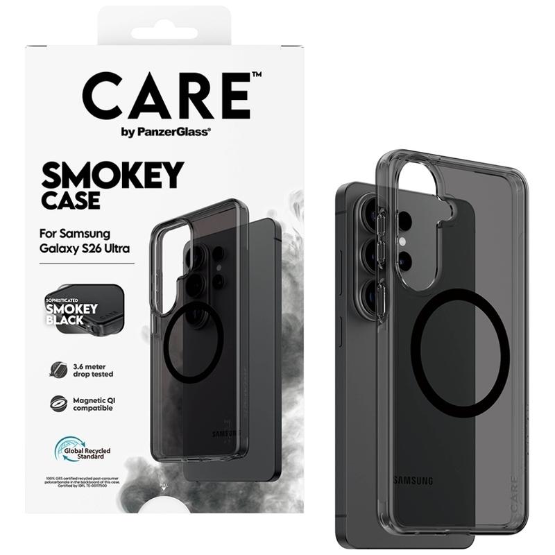 Coque magnétique Care by PanzerGlass Urban Explorer Smokey pour Samsung Galaxy S26 Ultra - 100 % plastique recyclé, testé pour des chutes de 3,6 m, garantie anti-jaunissement, protection améliorée de l'appareil photo