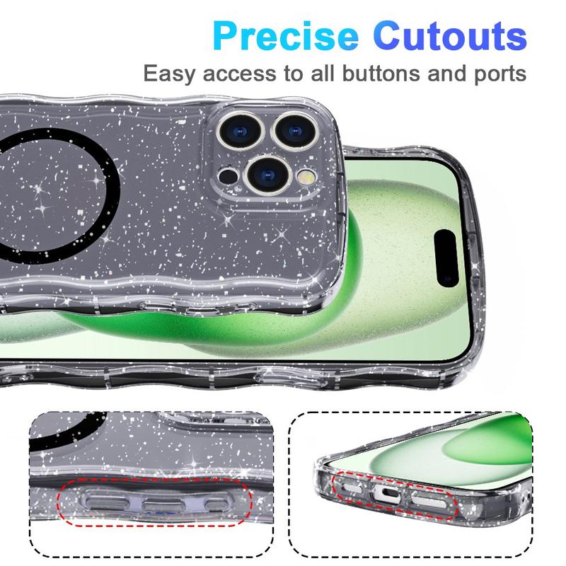 Coque MagSafe en TPU Wave-Edge Laser Glitter pour iPhone 15 Pro Max