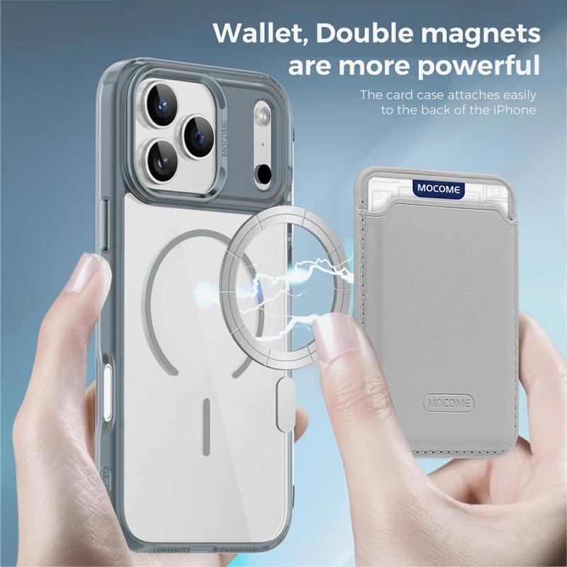 Cette coque pour iPhone 17 Pro Max offre une protection à 360° et une commodité moderne. Le porte-cartes magnétique amovible en fait l'étui idéal pour ceux qui préfèrent voyager léger, tandis que la compatibilité MagSafe garantit une recharge sans fil sans effort. Son design fin et cristallin vous permet de mettre en valeur votre iPhone 17 Pro Max tout en le protégeant.
