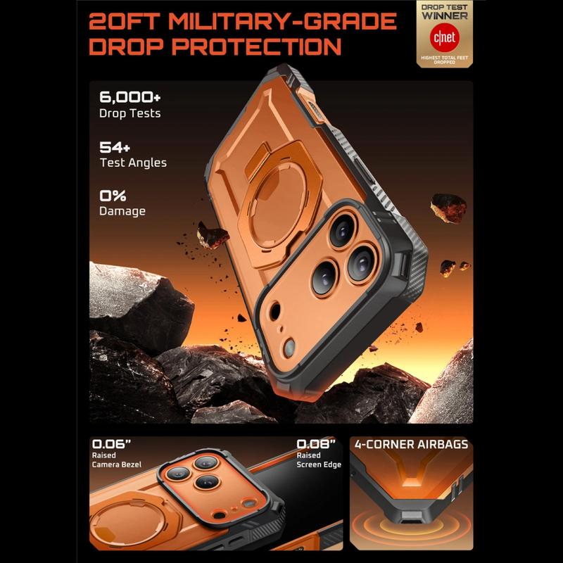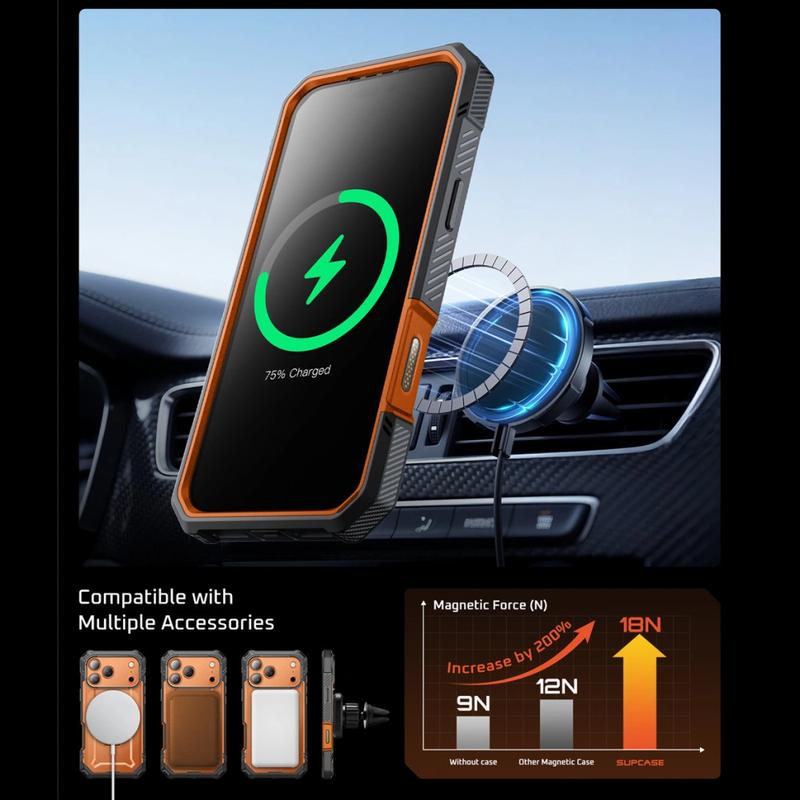 L'étui SUPCASE Unicorn Beetle Grip Pro Mag pour iPhone 17 Pro Max est conçu pour ceux qui exigent durabilité et fonctionnalité. Conçu avec du TPU résistant aux chocs et des coins renforcés, il est conforme à la norme MIL-STD 810G et protège votre appareil contre les chutes d'une hauteur maximale de 15 pieds, tout en le protégeant des rayures et de l'usure quotidienne.