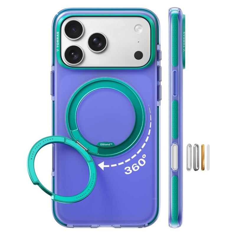 • Coque MagSafe Torras O3 Hue pour iPhone 17 Pro - Coque de protection en PC/TPU avec support magnétique à 360°