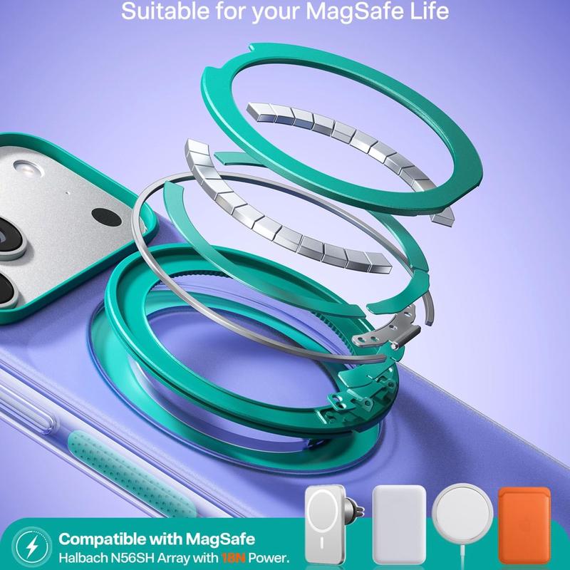 L'une des principales caractéristiques de cette coque est sa forte compatibilité magnétique. Dotée d'un ensemble d'aimants Halbach N56SH et d'une force d'attraction de 18 N, elle est conçue pour s'aligner de manière sûre avec les accessoires et chargeurs magnétiques compatibles. Le support magnétique intégré à 360° offre un confort supplémentaire, vous permettant de positionner votre iPhone 17 Pro pour une utilisation mains libres lors d'appels vidéo, de streaming, de lecture ou de tâches multitâches quotidiennes.