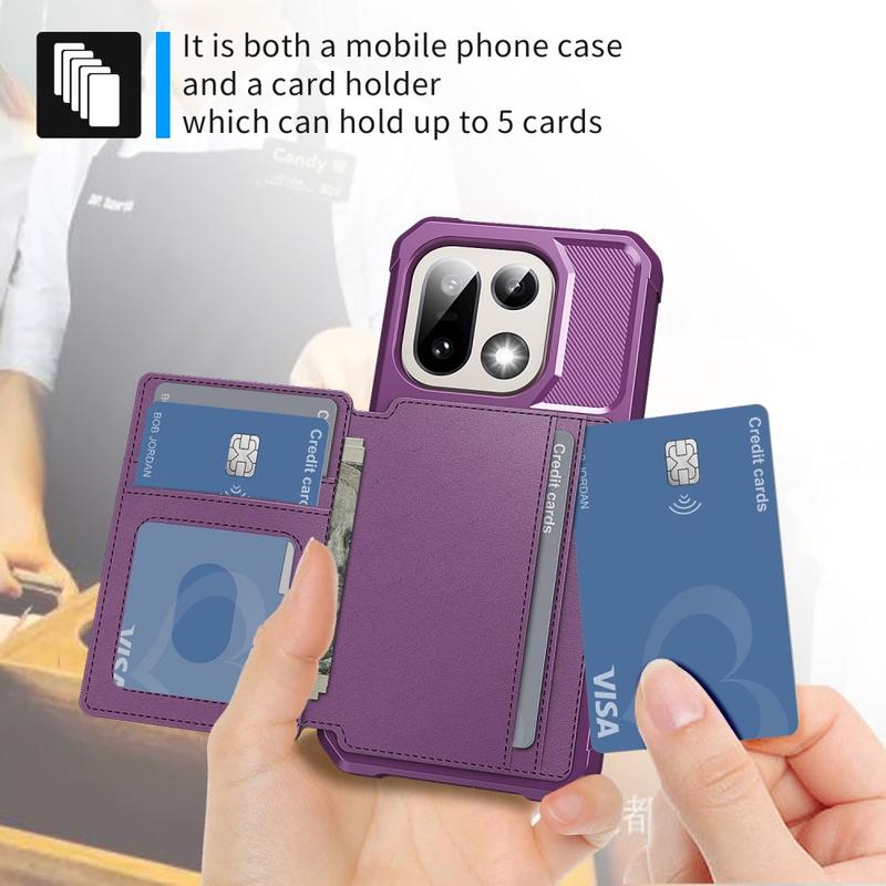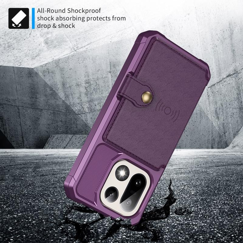 - L'étui portefeuille pour OnePlus 15 a une fermeture à bouton-pression sécurisée, un design de portefeuille et plusieurs fentes pour cartes avec une poche pour l'argent