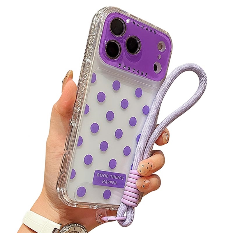- Spécifications - Matériau : TPU + PC | Compatibilité : iPhone 17 Pro | Style : Transparent à pois | Accessoires : Etui + Film pour objectif + Courroie.
