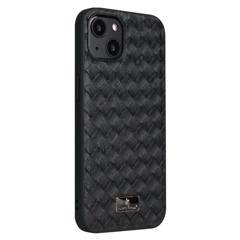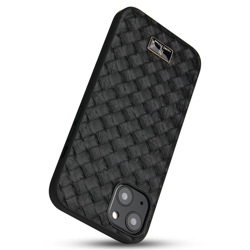 FIERRE SHANN Pour iPhone 14 Anti-rayures Ultra Mince Téléphone Cas Matériel Décor PU Cuir Enduit TPU Couverture Arrière