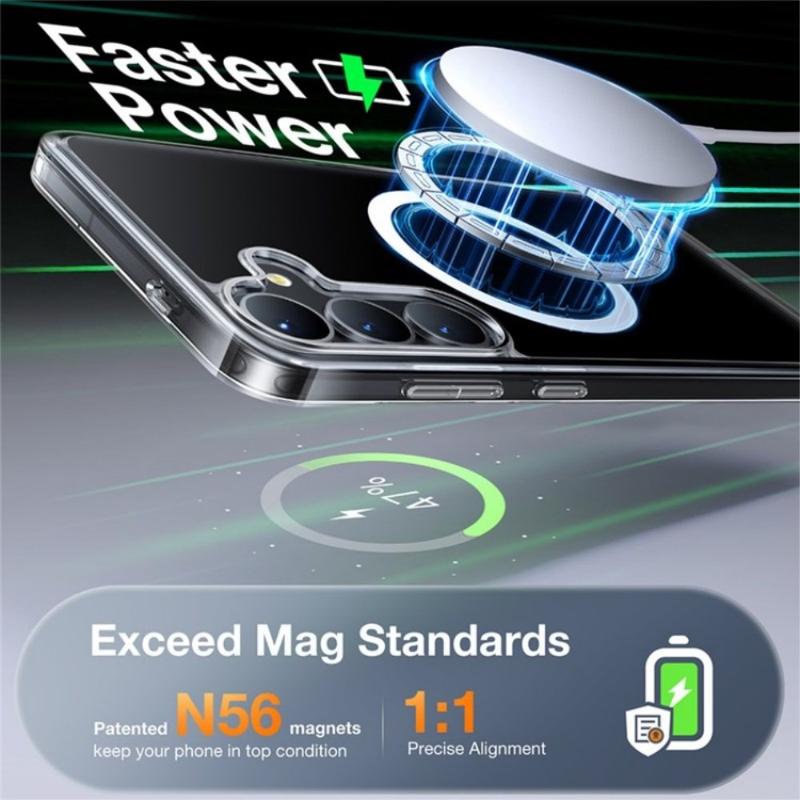 Les aimants intégrés à haute résistance garantissent une connexion sûre et stable avec les chargeurs magnétiques, les supports de voiture et autres accessoires compatibles. L'alignement magnétique permet une recharge sans fil transparente et une fixation fiable sans retirer l'étui.