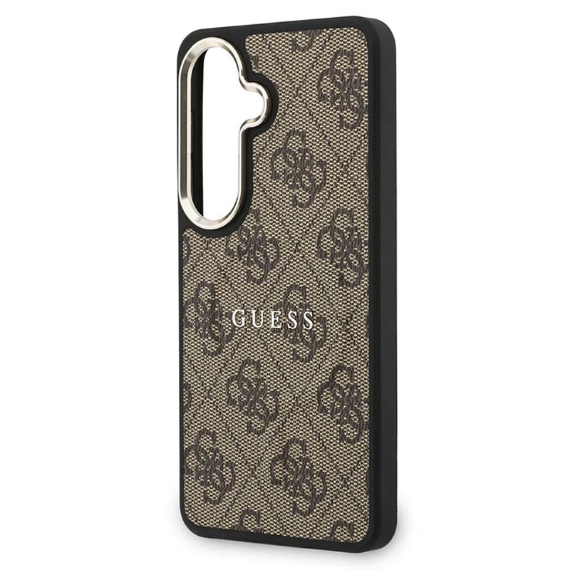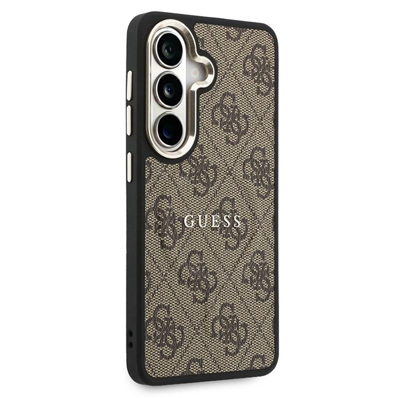 Coque MagSafe Guess 4G Gold Frame pour Samsung Galaxy S26 - Coque arrière protectrice fine, polyuréthane, compatible avec la recharge sans fil