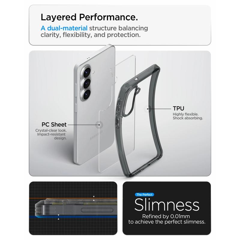 Protégez le dos de votre Samsung Galaxy S26 contre les aléas avec la coque Spigen Ultra Hybrid.