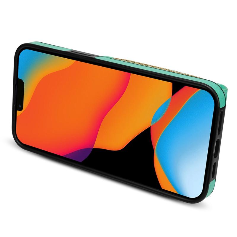 Coque tout-en-un iPhone 15 avec portefeuille et dragonne - Menthe