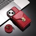 Coque tout-en-un iPhone 15 avec portefeuille et dragonne - Rouge