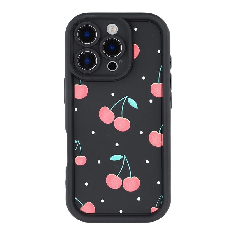 Coque TPU antichoc élégante iPhone 16 Pro Max avec bords relevés - Noire / Cerises