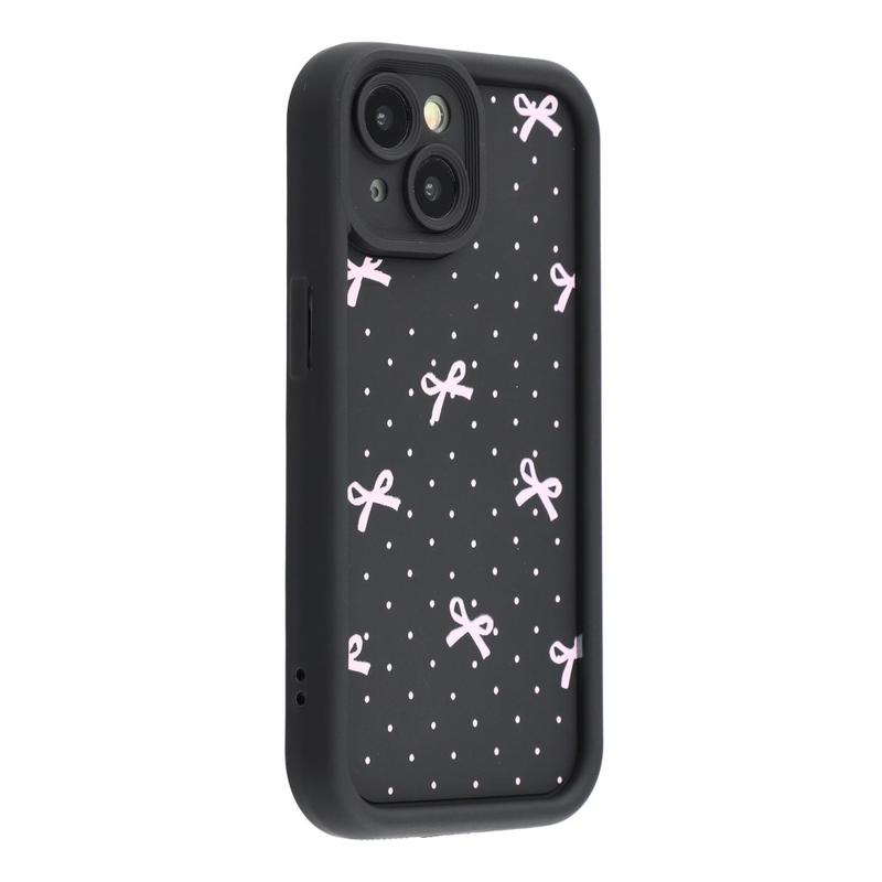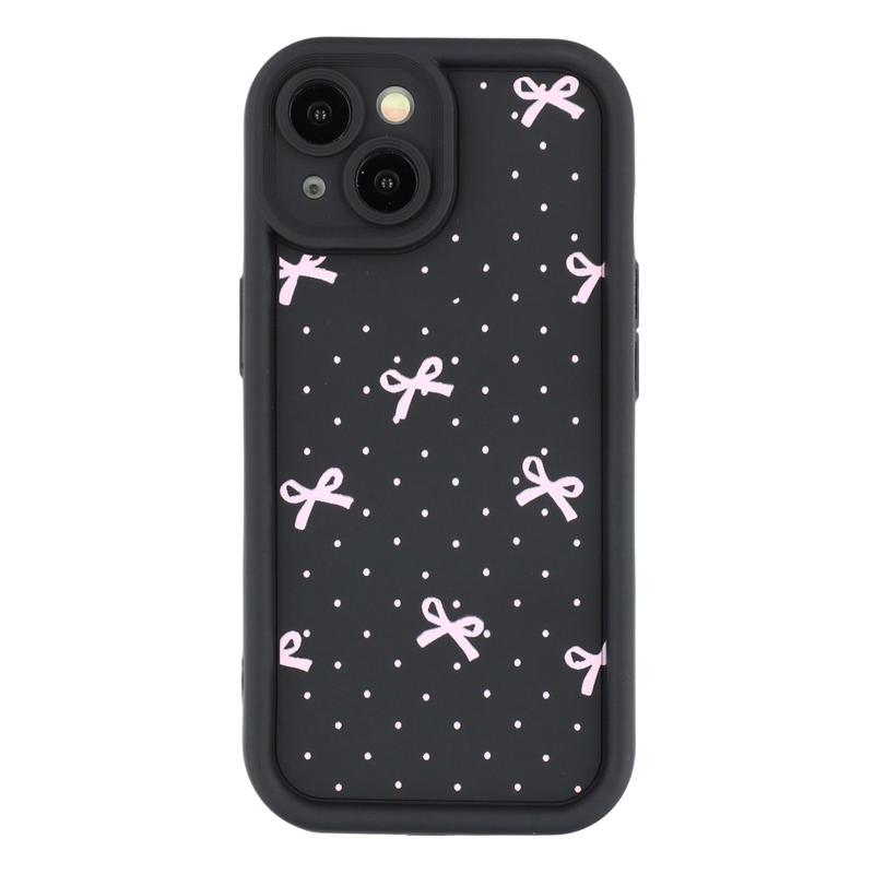 Coque TPU antichoc iPhone 14 Plus avec bords surélevés - Noire / Noeud à pois