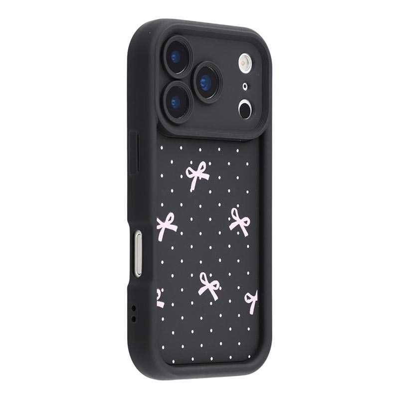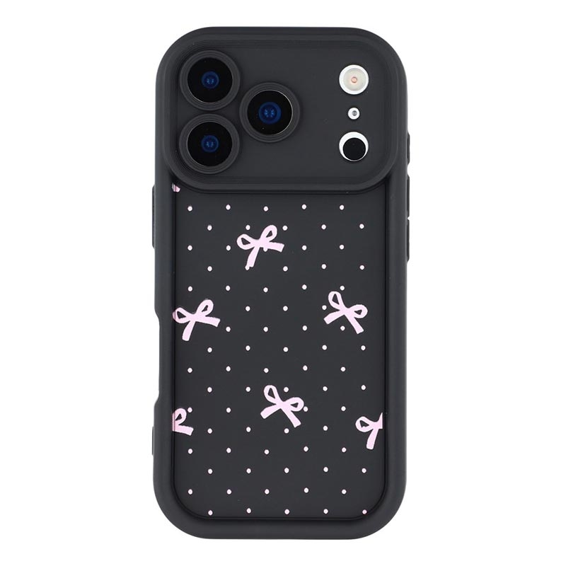 Coque TPU antichoc iPhone 17 Pro Max avec bords surélevés - Noire / Noeud à pois