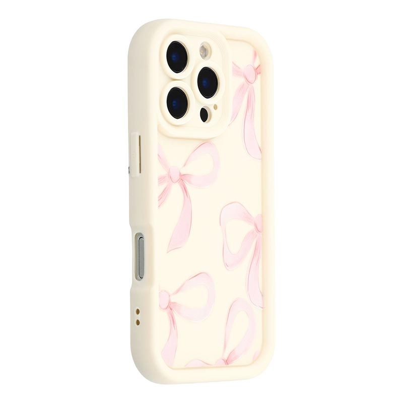 Coque TPU antichoc élégante iPhone 16 Pro Max avec bords relevés - Blanche / Gros nœud