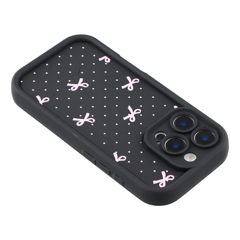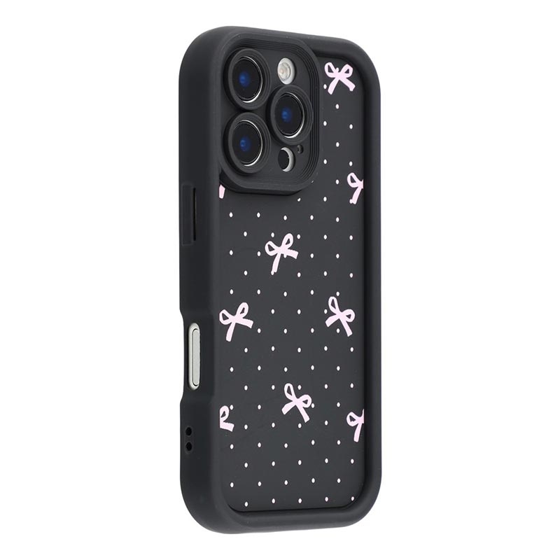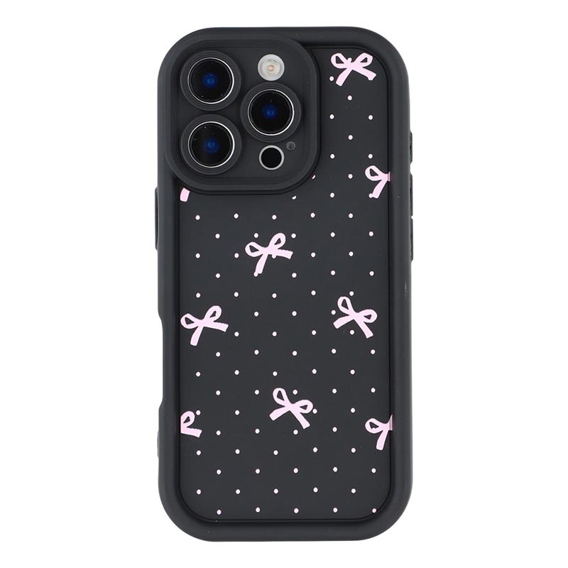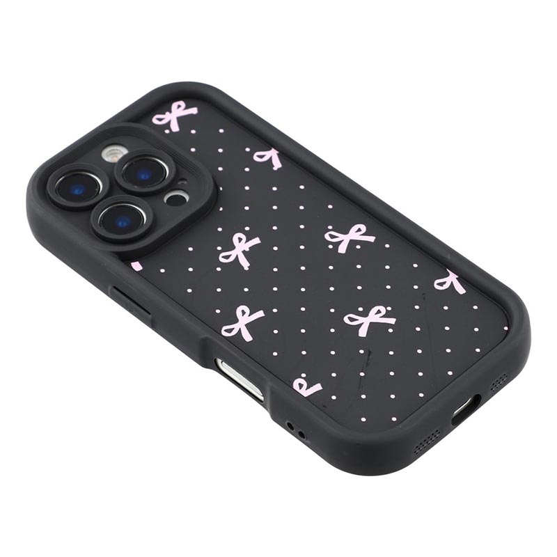 Coque TPU antichoc iPhone 16 Pro avec bords surélevés - Noire / Noeud à pois