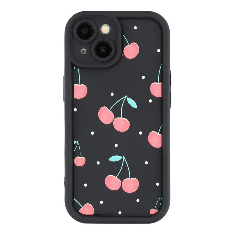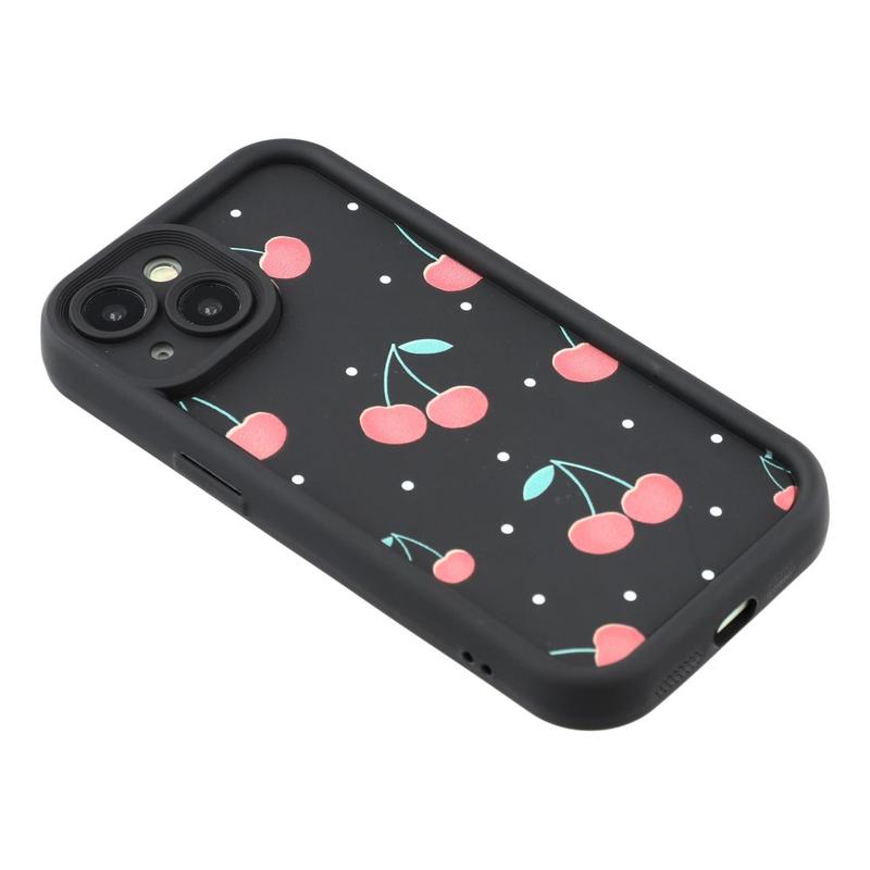 Coque TPU antichoc élégante iPhone 15 Plus avec bords relevés - Noire / Cerises