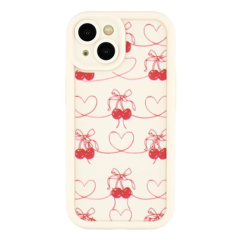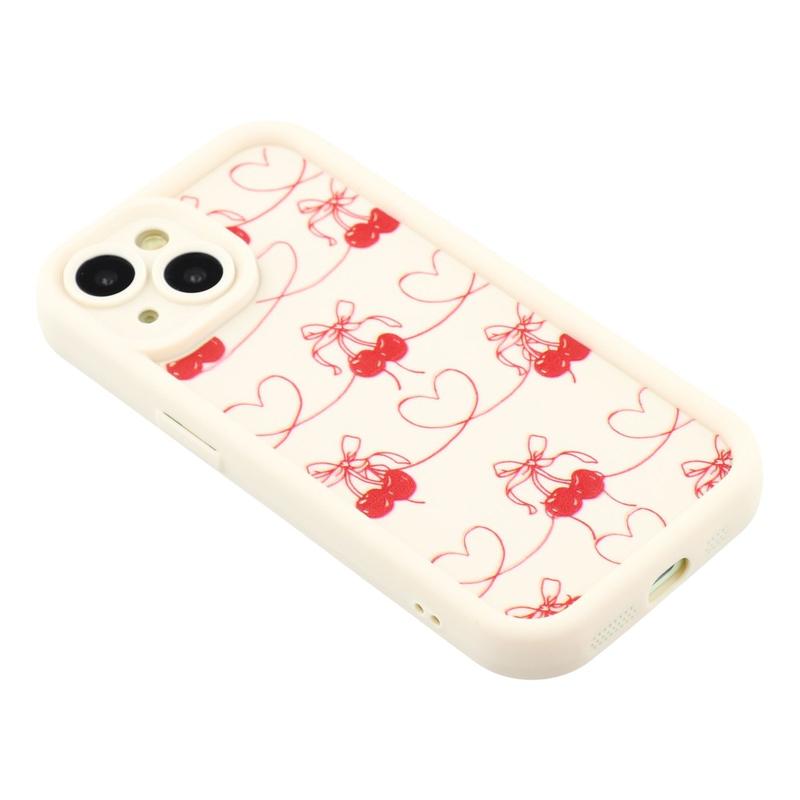Coque TPU antichoc élégante iPhone 14 Plus avec bords relevés - Blanche / Cerises à nœud