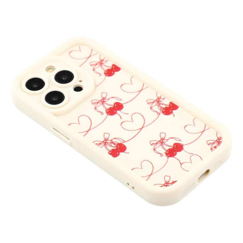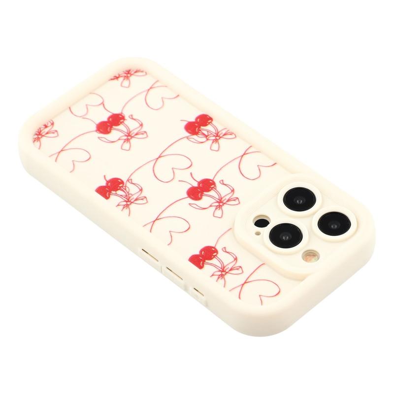 Coque TPU antichoc élégante iPhone 14 Pro avec bords relevés - Blanche / Cerises à nœud