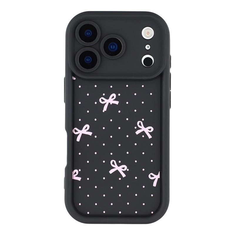 Coque TPU antichoc iPhone 17 Pro avec bords surélevés - Noire / Noeud à pois