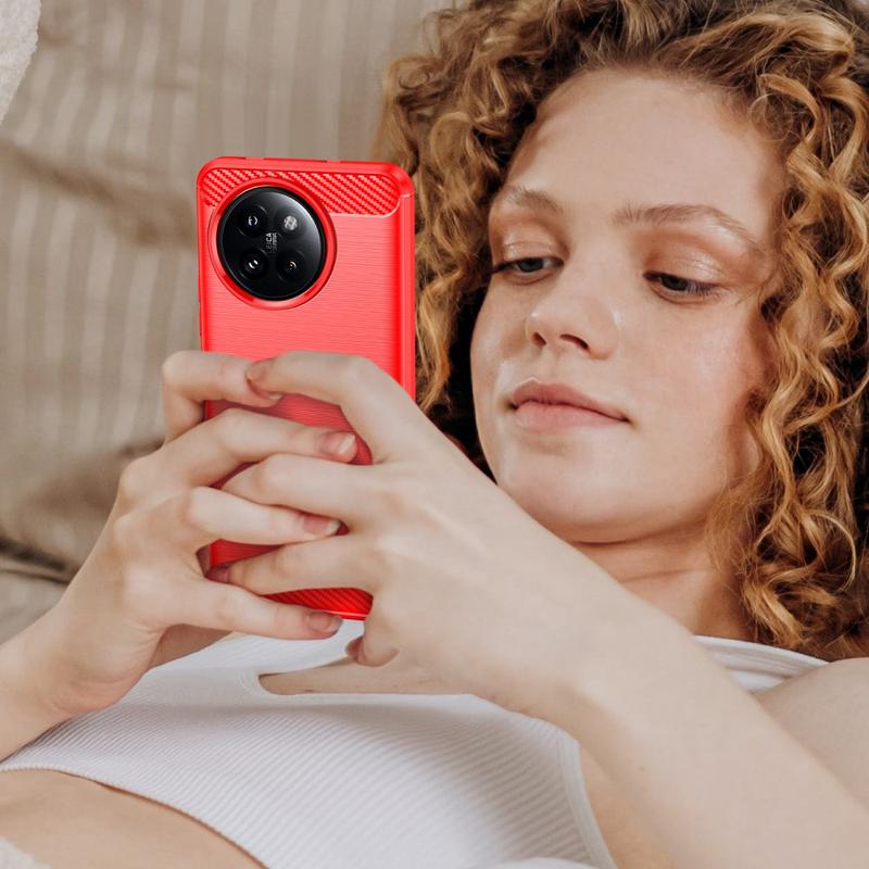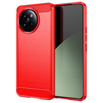 Coque Xiaomi Civi 4 Pro/14 Civi en TPU Brossé - Fibre de Carbone - Rouge