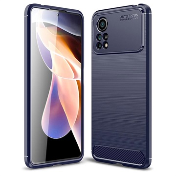 Coque Xiaomi Poco X4 Pro 5G en TPU Brossé - Fibre de Carbone - Bleu