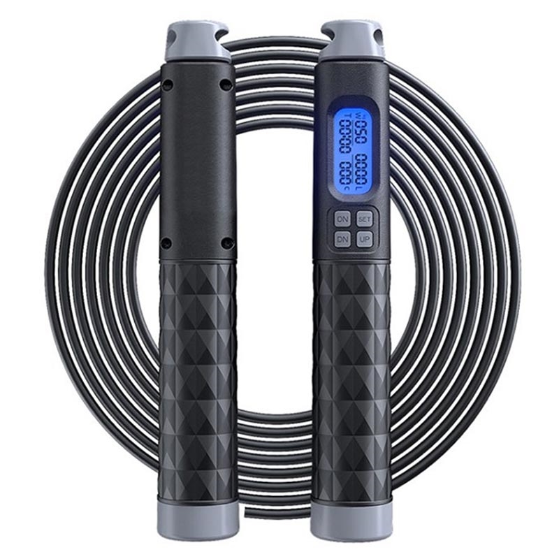Corde à sauter réglable S09 avec compteur numérique de calories et de tours - Noir