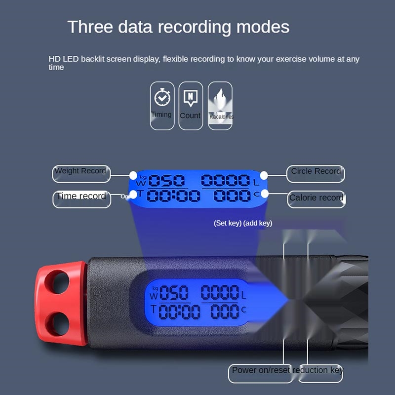 • Corde à sauter réglable S09 avec compteur numérique de calories et de tours - Corde à sauter 2-en-1 avec mode sans fil