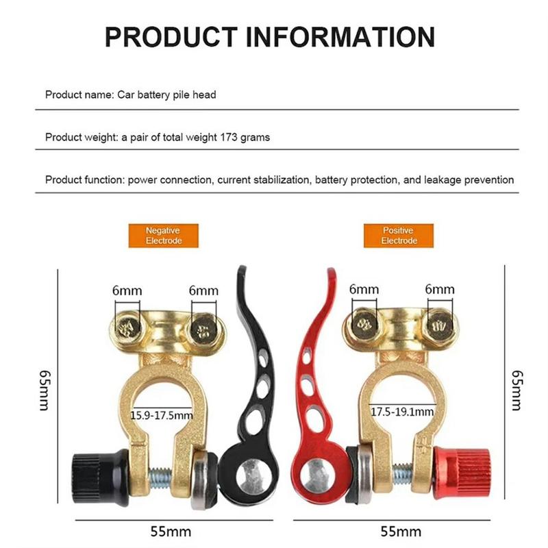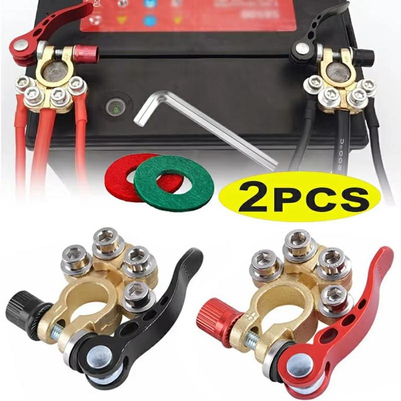 Améliorez le système de batterie de votre véhicule grâce à ces deux bornes à déconnexion rapide, conçues pour assurer une conductivité stable, faciliter l'entretien et offrir un câblage plus flexible. Fabriquées en cuivre pur, elles garantissent une circulation fiable du courant, tandis que leur système de verrouillage à levier permet une connexion et une déconnexion rapides en cas de besoin. Dotées de quatre bornes de connexion chacune, elles constituent un choix pratique pour les voitures, les camions, les caravanes et autres véhicules 12 V/24 V.