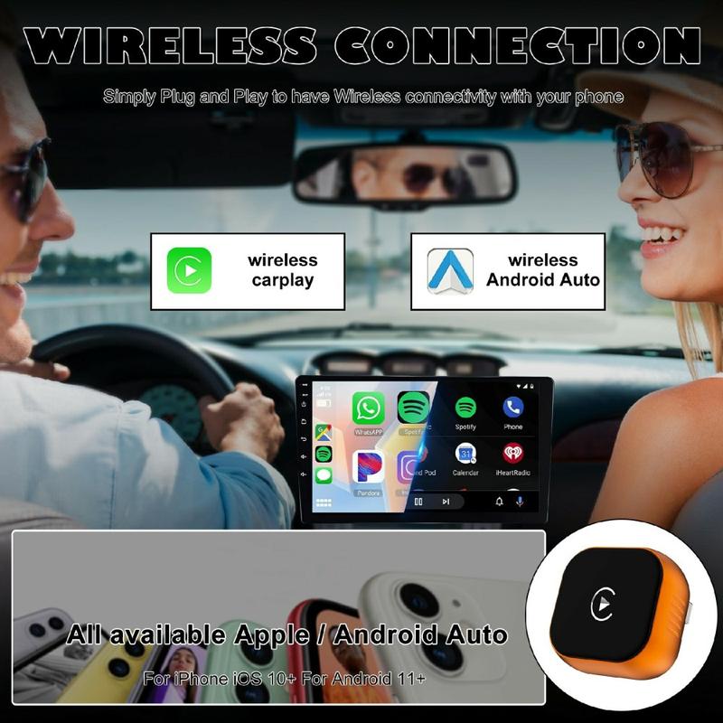 Équipé d'une puce Allwinner V821, d'une mémoire DDR3 de 64 Mo et du système d'exploitation FreeRTOS, le CP031-1 est conçu pour assurer une conversion stable du signal sans fil dans les véhicules compatibles. Il prend en charge à la fois CarPlay et Android Auto, ce qui le rend adapté aux utilisateurs possédant un iPhone 8 ou une version ultérieure, ainsi qu'aux téléphones Android compatibles. Le Bluetooth 5.3 et le module Wi-Fi intégré permettent de maintenir la connexion sans fil entre votre téléphone et le système embarqué pour les appels, la musique, la navigation et d'autres fonctions d'infodivertissement prises en charge.