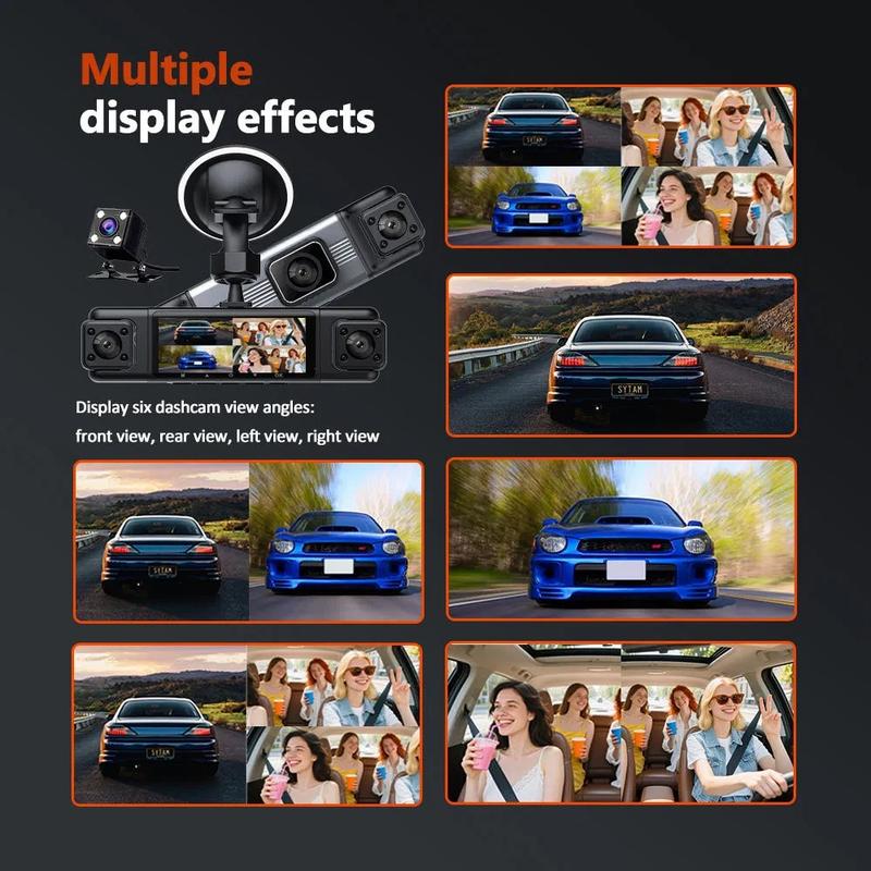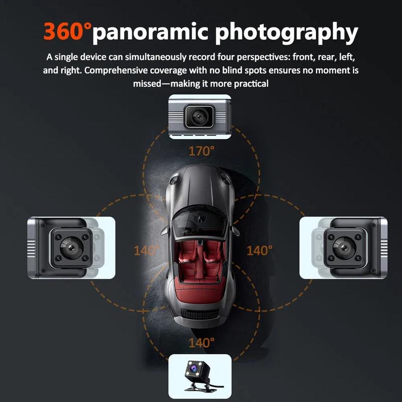 3.0" IPS 1080P 4-Lens Dash Cam avec enregistrement avant, arrière et latéral - Wide-Angle Vehicle DVR
