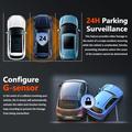 - Fonctions : Enregistrement en boucle, mode parking, détection de mouvement, capteur G