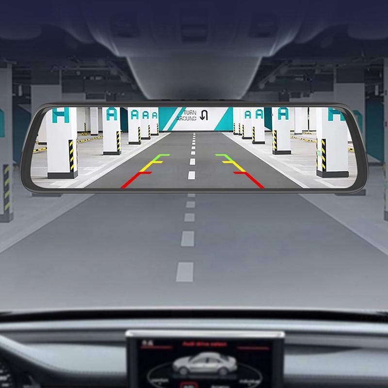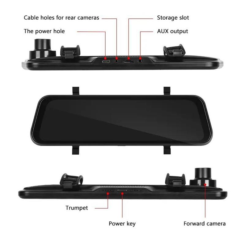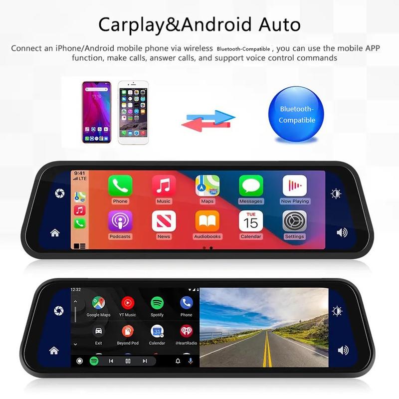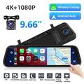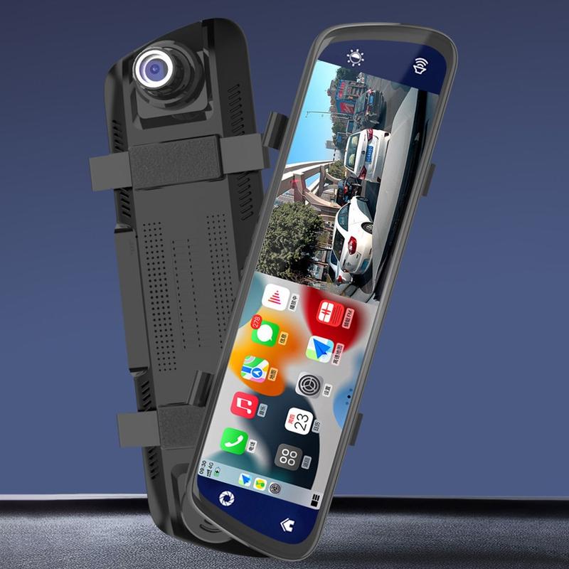 • 904 9.66" Dash Cam à écran tactile et double objectif avec CarPlay - Rétroviseur plein écran en streaming 4K et 1080P Dual Lens DVR
