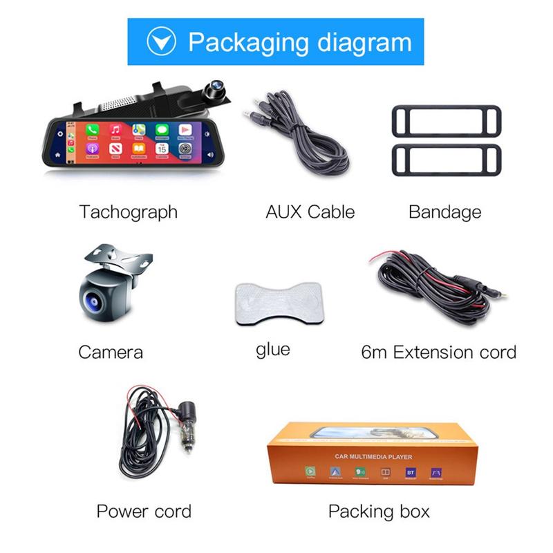 Dash Cam à écran tactile et double objectif avec CarPlay - 9.66" - Noir