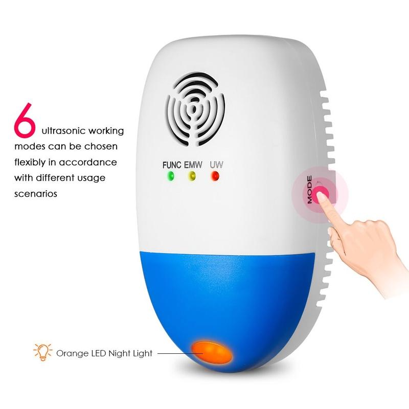• DC-9002 Répulsif ultrasonique pour nuisibles - Répulsif électronique à 6 modes pour souris, moustiques, cafards, etc.