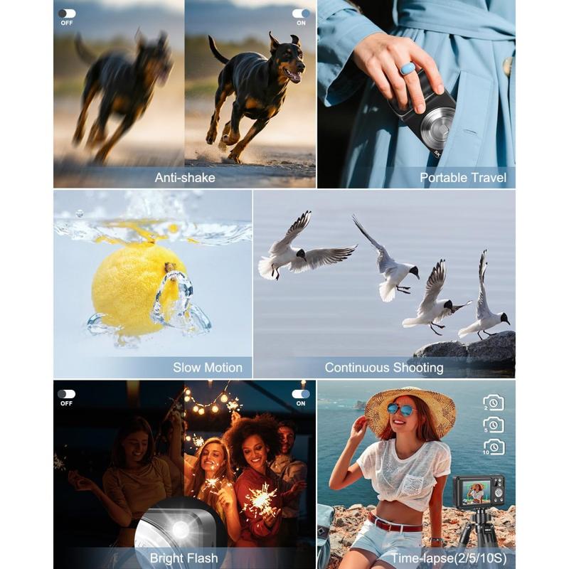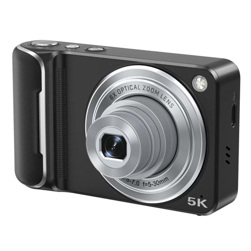 • Mini caméra numérique DC309X - Zoom optique 6X, double objectif, enregistreur vidéo 5K avec carte 32 Go et 2 piles